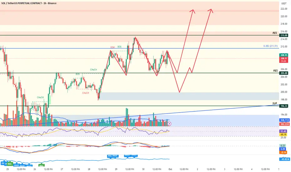 Looks to me it'll break 205. There is way too much liquidity below 205 for it to be ignored. I checked on coinank. coinank.com/zh/chart/derivatives/liq-heat-map/solusdt/1d