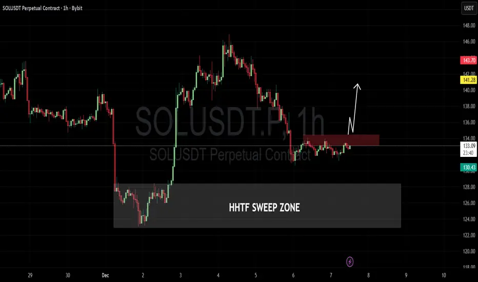 The "HHTF Sweep Zone" provides a strong floor, giving this setup a defined risk-to-reward ratio if the breakout occurs.