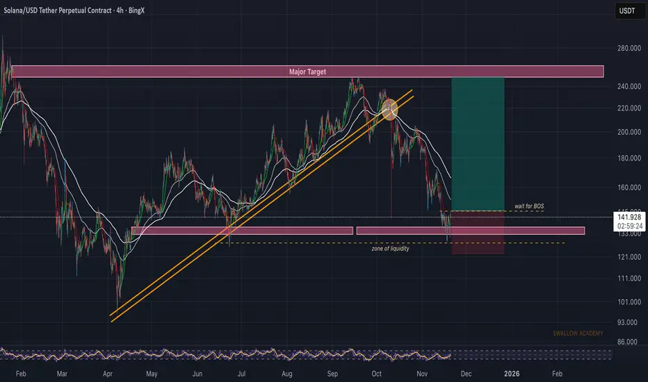 SOL had a decent bounce from a liquidity zone, where buyers showed some reaction. For now we’re waiting for a clean BOS to confirm that buyers are actually stepping back in to fully overtake this area.