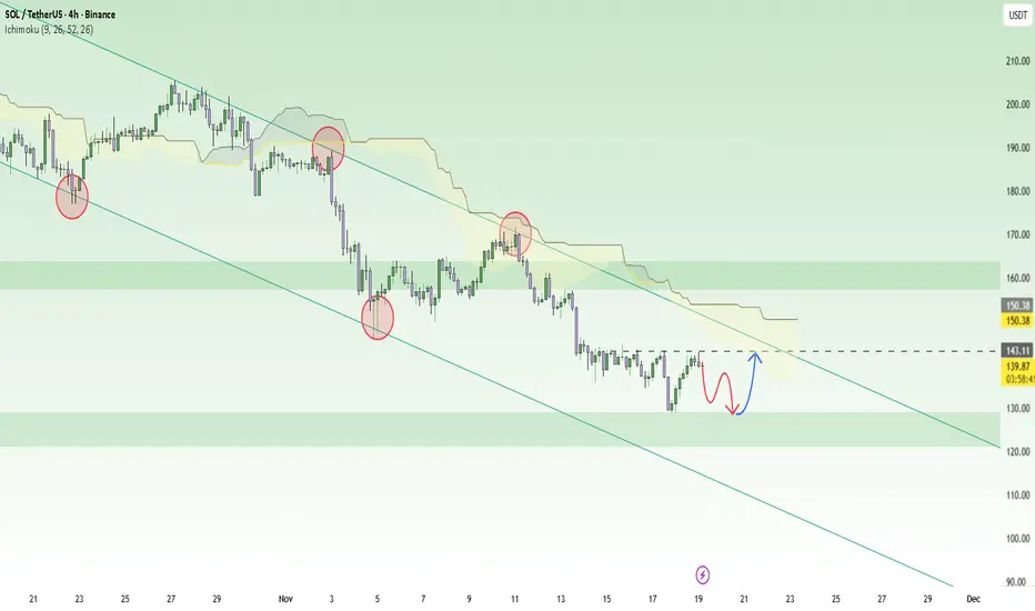 The 4H chart shows that the price is reacting well at the 128.00 support level and has the potential to bounce from here. SOLUSDT is trading within a descending channel, but if it breaks above 139.00, the next target will be 143.00. Additionally, the Ichimoku indicator shows positive signals, with the Ichimoku cloud beginning to thin out.