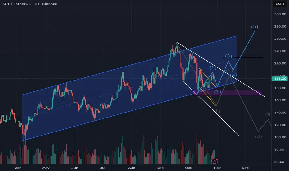 An upward movement is most likely expected, with a breakout from the descending expanding wedge, within the ascending channel, to levels of $206, $220, and above...