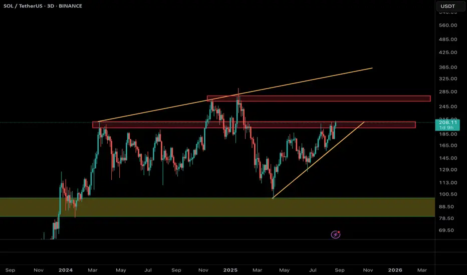 As long as SOL stays above $200, the structure remains bullish. A breakout above $213 would confirm momentum and unlock a potential move toward $270, while rejection could mean another corrective dip before the next attempt.