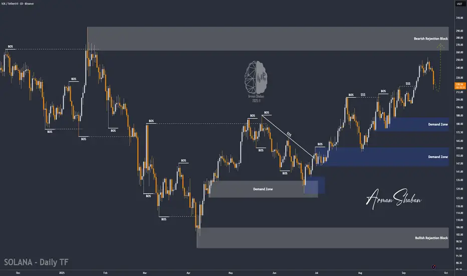 By analyzing the Solana chart on the daily timeframe, we can see that the price is trading around $215. Today it corrected down to $212, and I expect that if the price can hold above $218, Solana could soon start moving higher toward new targets.The possible mid-term targets are $230, $242, $254, and $262.