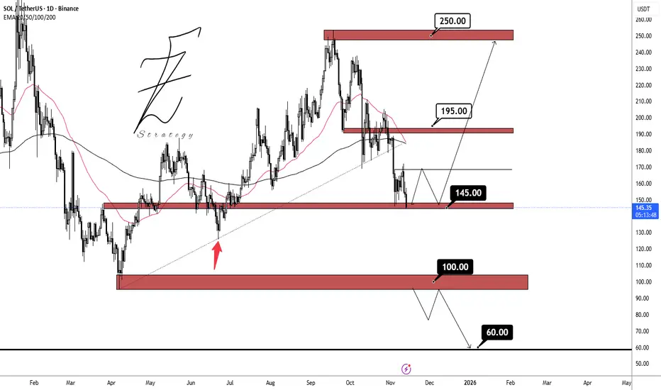 SOLUSDT showed a positive reaction around the 145.00 dollar support zone, and with weakening bearish momentum, the likelihood of holding above this level has increased. If this support remains intact, the next target will be the 195.00 dollar resistance area.