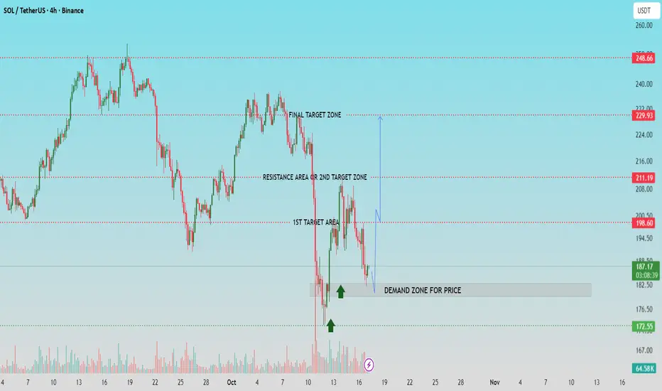 SOL is currently trading inside a well-defined demand zone. Price has reacted positively to this level twice before (green arrows), suggesting buyer interest and possible accumulation.