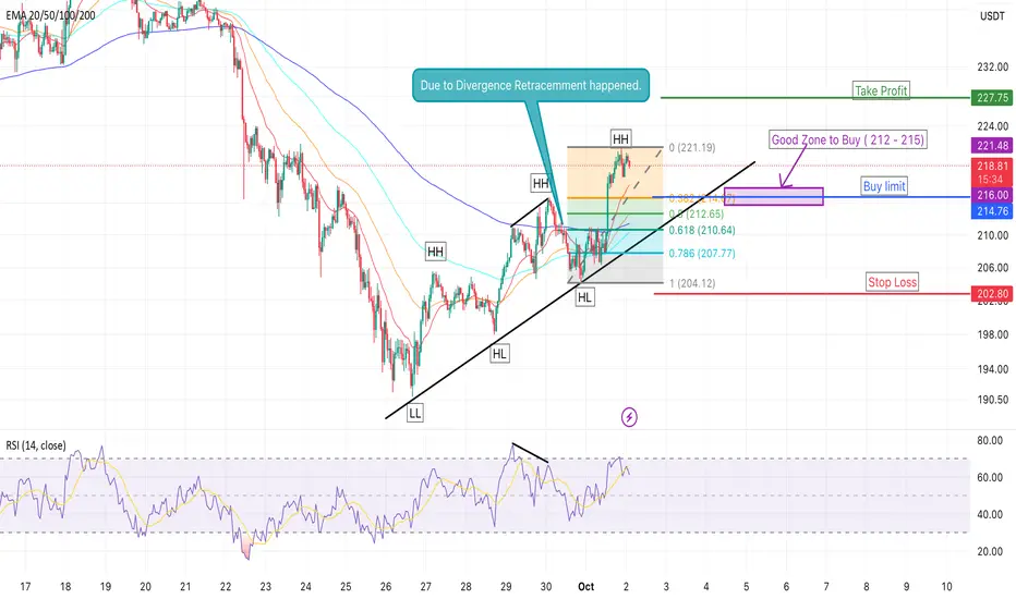 If SOL holds above 214–212 support, we may see a continuation toward 225–230 next resistance zone.