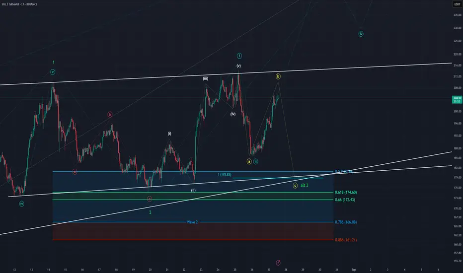 The green Wave 2 support are lies between the 0.5 FIB at 180.84 USD and the 0.786 FIB at 166.08 USD. In either Scenario as long as we hold support we are looking for a aggressive Wave 3 to the upside which should take us to 300 USD+ respectively to a new ATH.