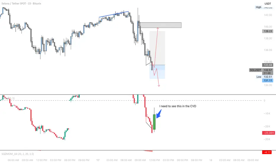 There is a chance that price could make a move back up and take out sell orders. however CVD must show high volume of buyers. if price continues lower and CVD continues lower as well, we must be patient for the exhaustion of sellers for buyers can come in