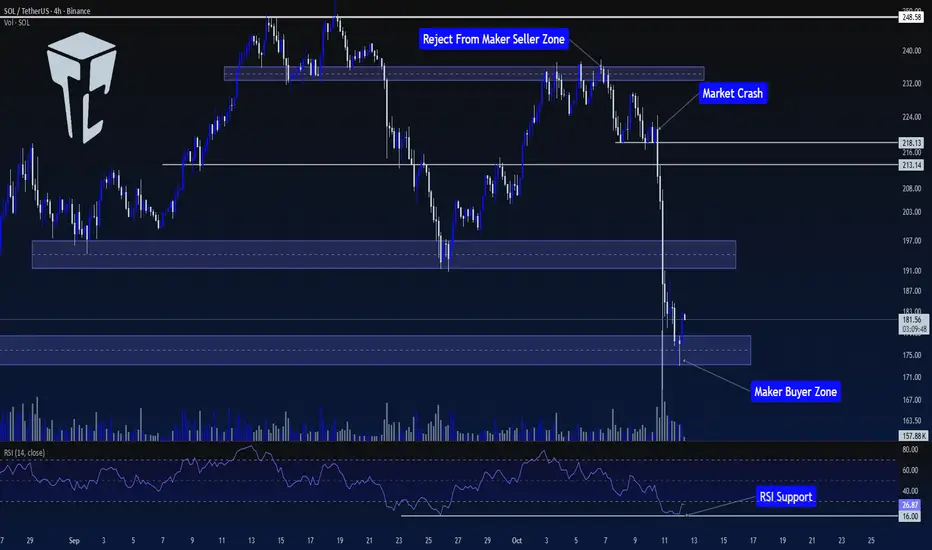 ✨ Over the course of 2-3 candles, SOL made a sharp move towards the first Maker Buyer zone, breaking it and reaching the second Maker Buyer zone.