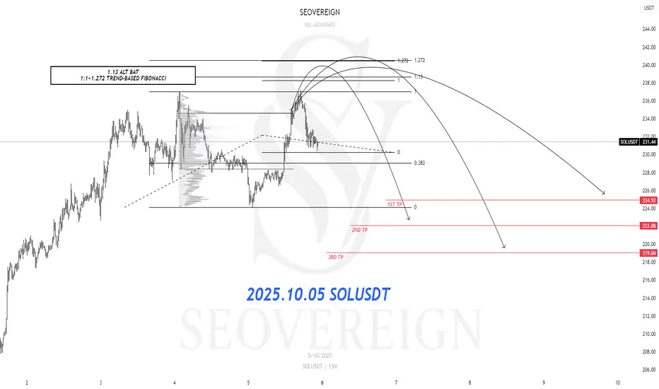 The first basis is the 1.13 Alternate Bat (ALT BAT). The Alternate Bat is a variation of the harmonic pattern established by Scott Carney, and its core principle lies in defining the PRZ (Potential Reversal Zone) where point D is located at 1.13 times the XA leg (=1.13XA). The convergence of these ratios creates a relatively narrow and reliable retracement (or reversal) zone, so when D is positioned around 1.13XA, it is necessary to carefully observe the potential for a short- or mid-term reversal.