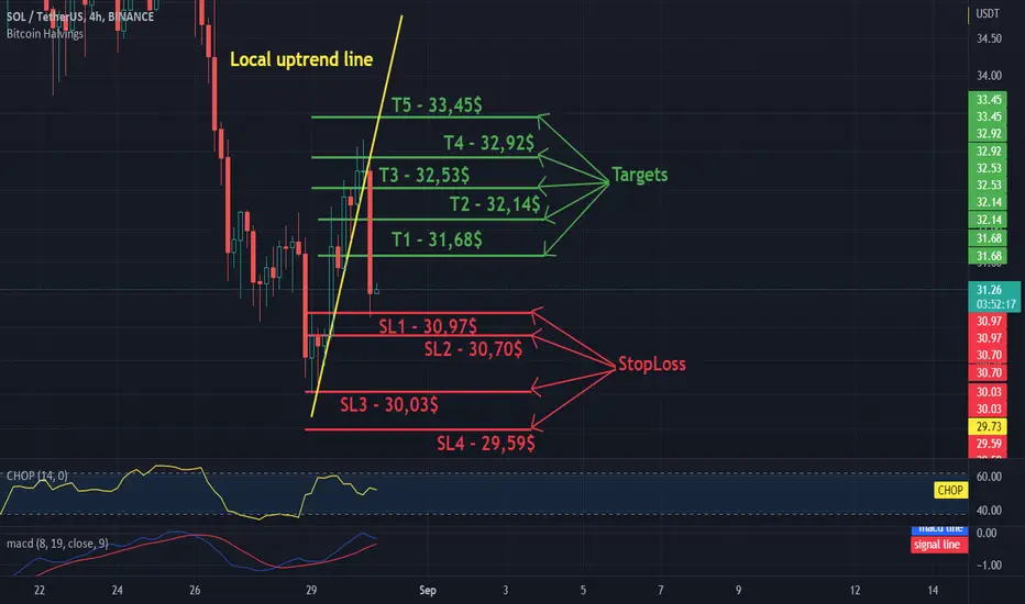 Hello everyone, let's take a look at the 4H SOL to USDT chart as you can see the price is moving below the local uptrend line.