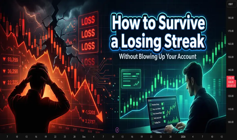 A real trading career always includes stretches of pure red. Five, seven, even ten losses in a row can appear without anything "being wrong" with the setup. At that point the market stops looking like candles and levels, and starts looking like a personal enemy. Without a plan written in advance, the usual reaction is to increase size and "win it back."