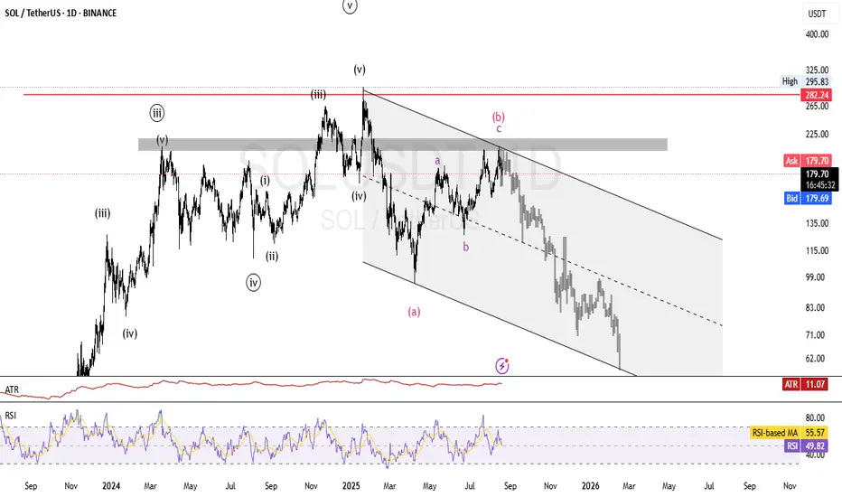 Hello. As you can see in the Solana chart, the analysis is based on Elliott waves in the long term. This is only a perspective and cannot be the basis for trading, but it seems that after reaching the deadline area, we can expect a continuation of the correction for wave C. So keep this perspective in mind, as it is possible.