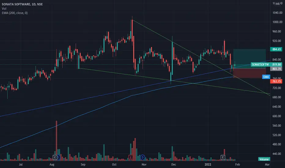 SL is placed below support zone & the lower trendline. The target is placed near resistance.