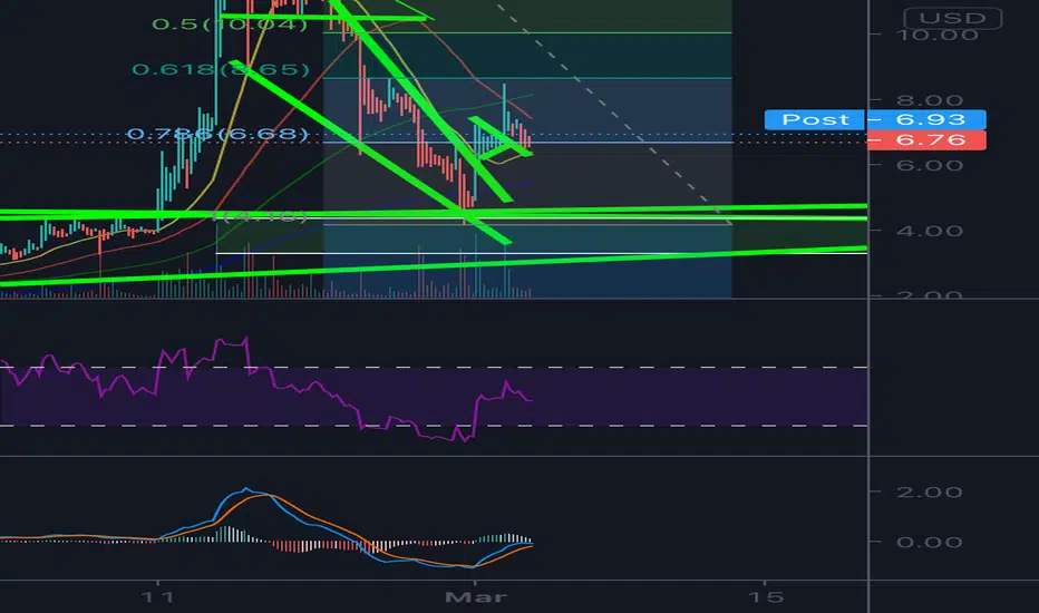 Got a very very strong bounce high volume break from the old pattern breakout of the past. Seems to be holding support at fib level of 6.68$. This is a nice area for me as long as it continues to hold. Next fib resistance above is 8.64