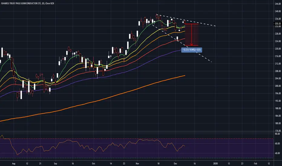 SOXX has closed above the upper trendline, therefore the short opportunity has not manifested, close the trade.