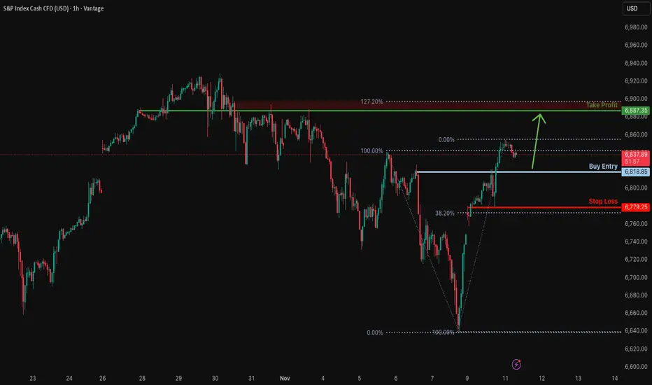 S&P500 is falling towards the support level, which is a pullback support and could bounce from this level to our take profit.