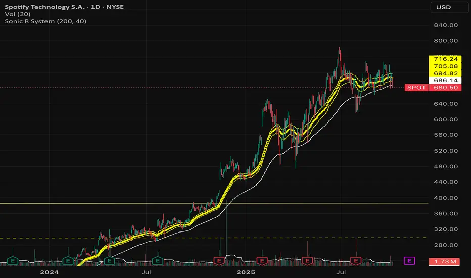 SPOT has been in an uptrend for last 3 years. It appears that it's running out of gas.