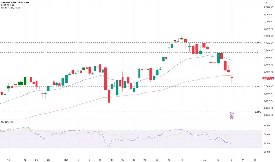 The US500 is currently undergoing a technical correction driven by sector shakeouts in tech, but strong underlying buying interest at key retracement levels suggests the medium-term bull market is technically intact. A move above 6,830 is required to resume the uptrend.