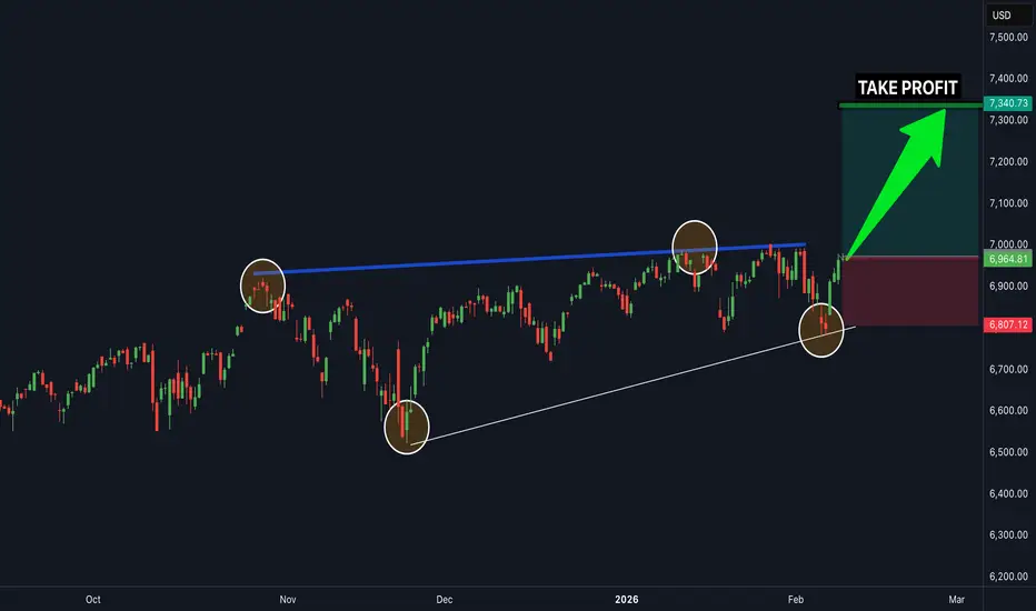 SPX 500 is in a clear upwards channel and has broken the last bit of resistance (white trendline line shown) - this is a clear confirmation that the next target will be the next resistance zone to the upside shown above (this is a great buy trade opportunity) - time to buy SPX 500 now...