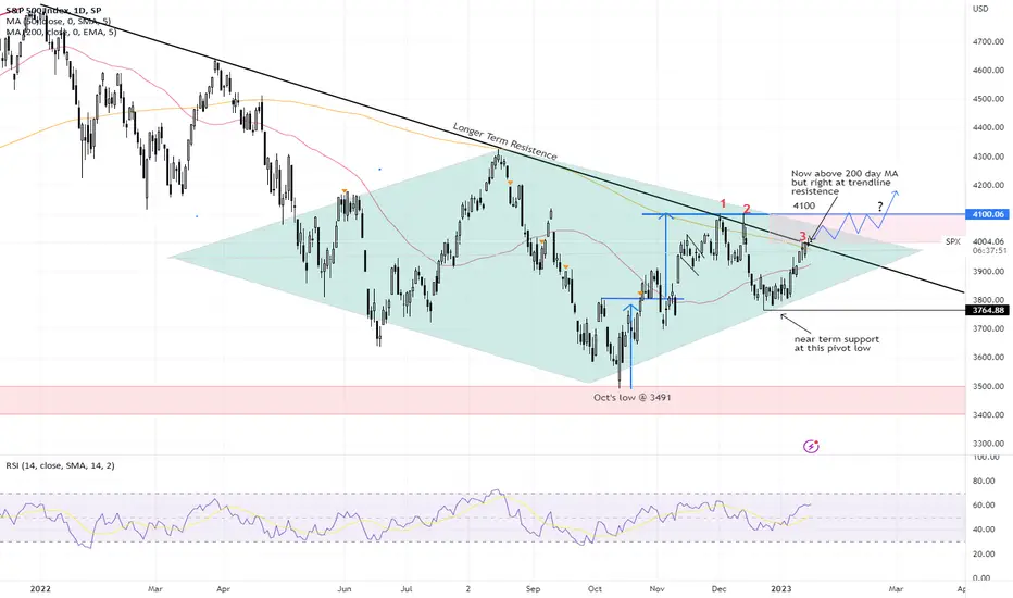The odds have increased that it will eventually test the 4100 level in the not too distant future, We may face some resistence at 4100 but the next pullback could be an opportunity to buy the dips, especially if pull backs do not bring it below the 200 day moving average again or formed a higher low.