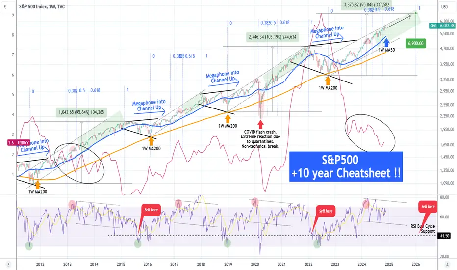 As a result, while the 1W RSI trades within its Channel Down and above 41.50 and all price candles close above the 1W MA50, we expect the index to extend the multi-year uptrend to 6900, which would represent a +95.84% rise from the October 2022 bottom, similar to the February 2015 High. Notice that the December 2021 top was also of a similar magnitude (+103%).