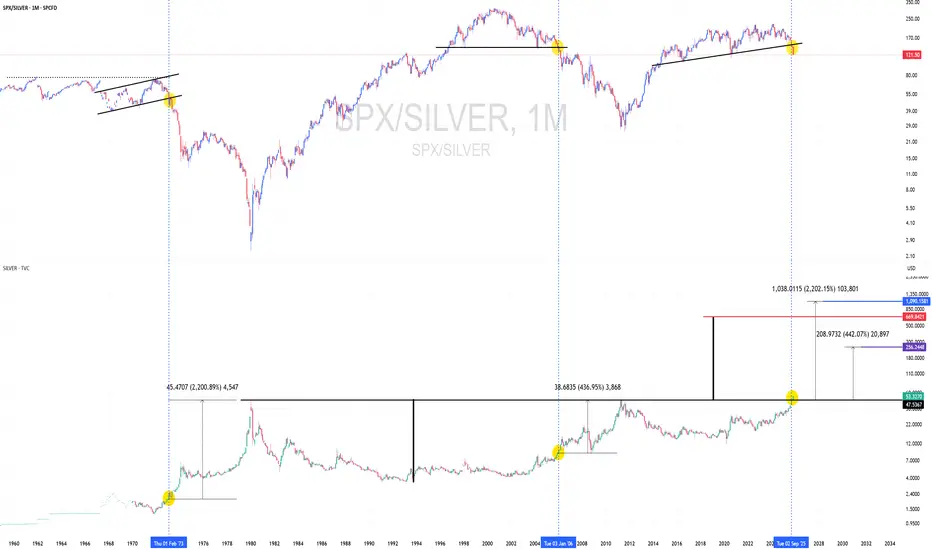 Silver targets: $250 or $1000? Cup and handle measured move is around $670.