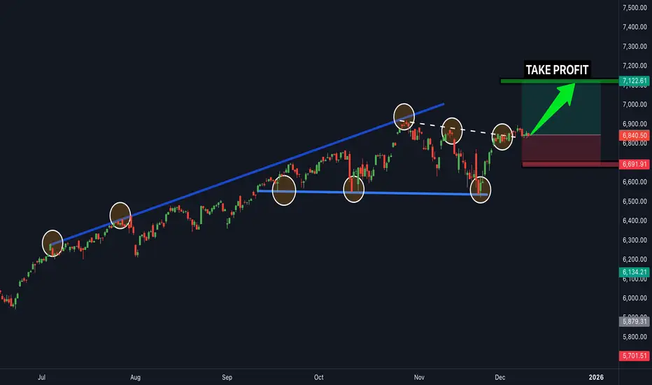 SPX 500 is in a clear upwards channel and has broken the last bit of resistance (white trendline line shown) - this is a clear confirmation that the next target will be the next resistance zone to the upside shown above (this is a great buy trade opportunity) - Time to buy the SPX 500 now