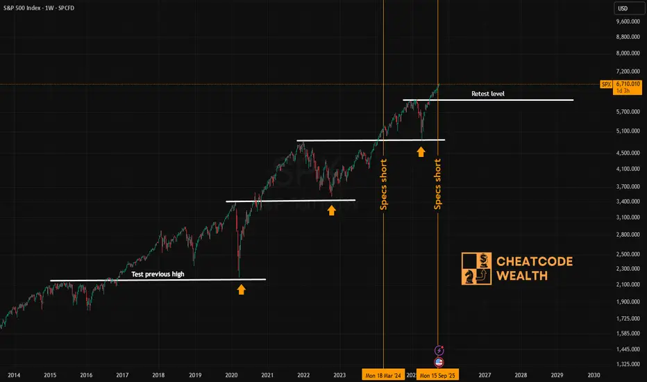 The SP500 has been retesting previous highs since 2018. Large specs are also net short which tends to occur near the beginning of rallies. These technical indicators suggest that the SP500 has more upside before a plausible retest.