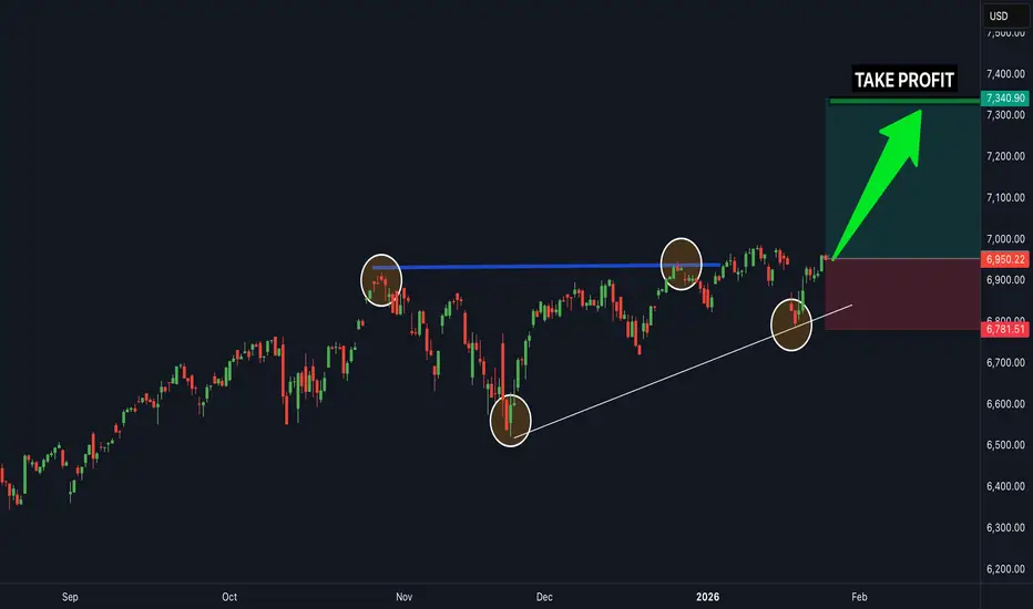 SPX 500 is in a clear upwards channel and has broken the last bit of resistance (white trendline line shown) - this is a clear confirmation that the next target will be the next resistance zone to the upside shown above (this is a great buy trade opportunity) - time to buy SPX 500 now...