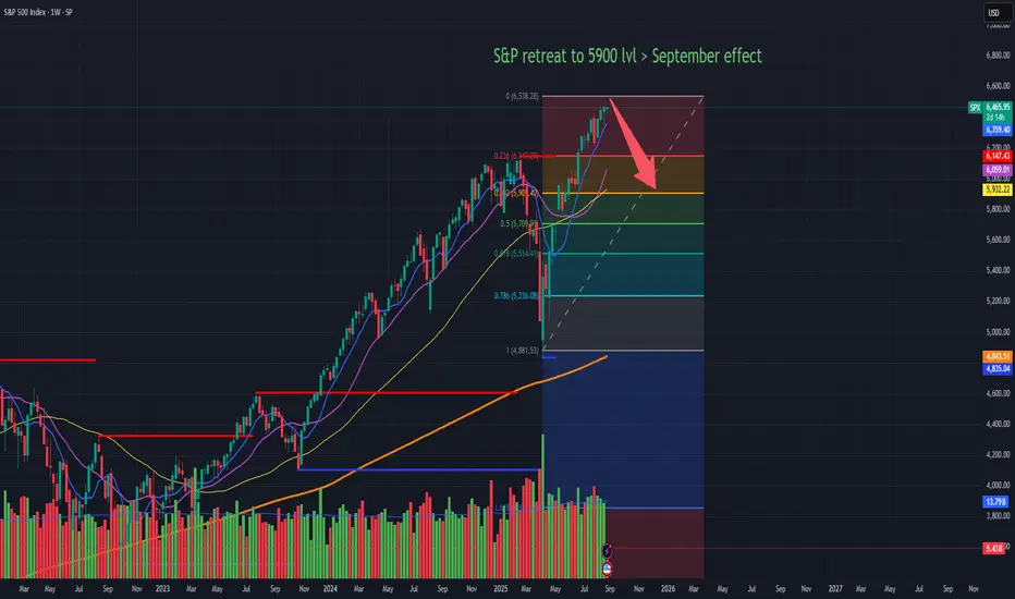 September has historically been a challenging month for stocks, especially indexes like the S&P 500. While several human behavioral factors contribute, algorithmic trading significantly amplifies this effect. I am expecting S&P to retreat to 5900 lvls and stocks to drop heavily alreadt end of this week.