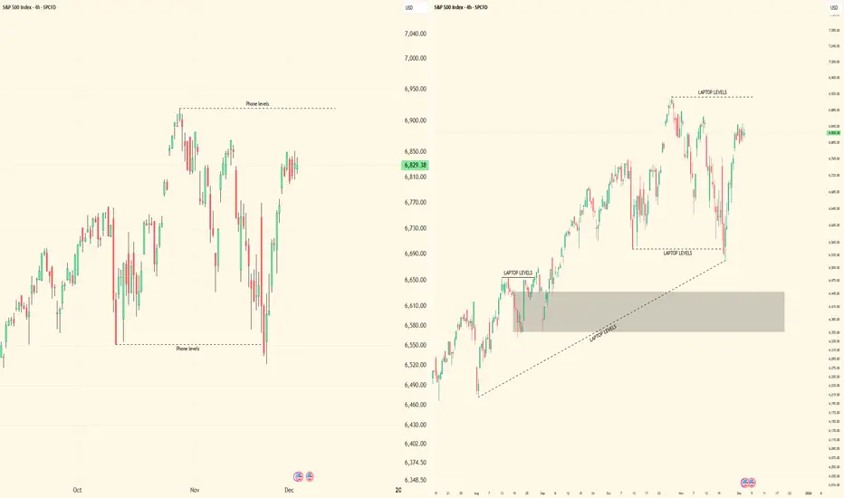 I posted screenshots to show the difference between iPhone and laptop trading setups. Laptop view is on the right side, showing full charts and multi-interval visibility. iPhone view is on the left side, compact and limited. This makes it clear why execution and workflow are easier on a laptop.