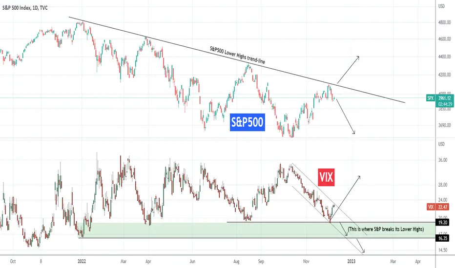 However, a break below VIX's Low, into the Green Zone, should make the S&P500 finally crosses above this 1 year Resistance. Further, a VIX break below the 16.35 Low (formed by the January 04 Low), should technically confirm the long-term bullish break-out. This can be as early as the start of 2023 if VIX's Channel Down is extended.