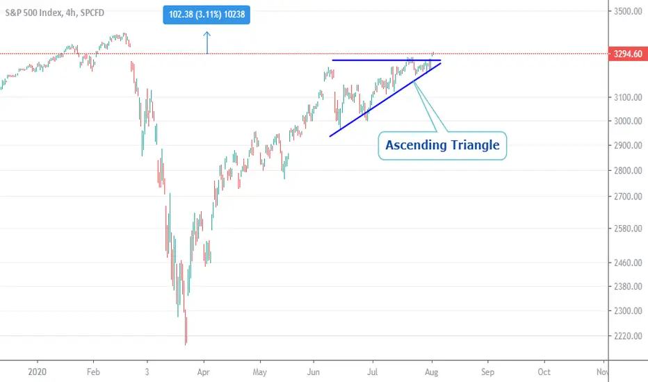 SP500 is breaking out of a bullish accumulation pattern called the ascending triangle. It is important to wait for the price to make a pullback on this triangle.