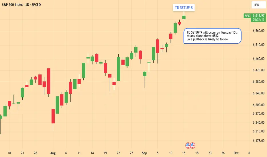 TD SETUP 9 is in the cards on Tuesday 16th September, after which a small pullback is likely