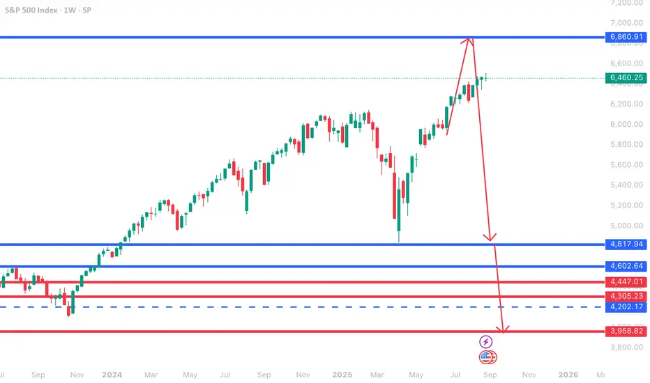 SPX has a maximum upward price of 6,860$ before the next set of drops to wipe out all progress made in the market over the past 2 years.