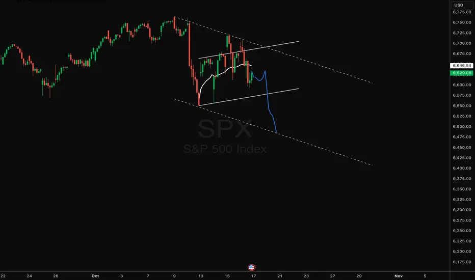 SPX remains capped below the anchored VWAP — sellers still dictating flow. If price can’t reclaim above, a move toward the lower bound of this descending channel remains in play. Watching for a reaction near channel support.