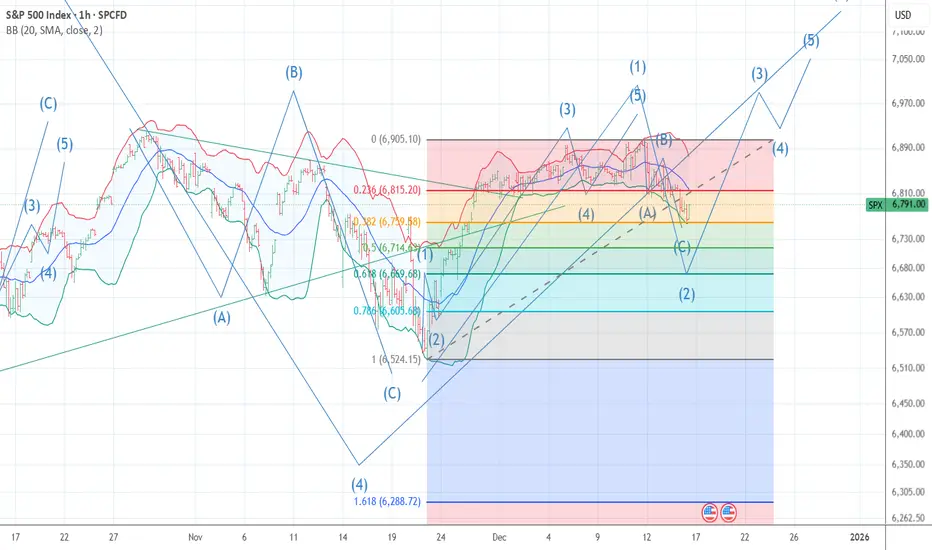 The chart posted is the sp 500 I am calling the decline as Over and wave 3 up to start waves and c are equal and the drop was .382 > I now look for the santa rally to start in wave 3 up it should be .618 of wave 1 wave 3 should now see 6996 plus or minus 5. best of trades WAVETIMER I am NOW long calls at 75 %