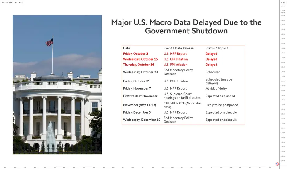 The November 7 NFP report and Supreme Court hearings on tariff policies, scheduled for the same week, may also be affected if the shutdown continues. Similarly, November inflation data (CPI, PPI, and PCE) could face further delays, undermining the accuracy of economic forecasts for year-end.