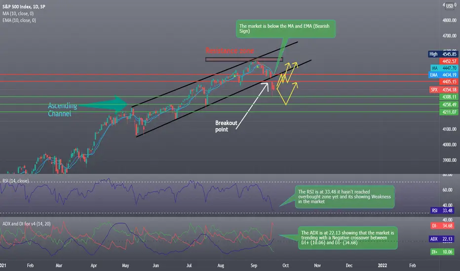 If the Bulls were able to gather the force need to gain control then we will see an increase in the market that would reach the 4452.57 resistance level where we might have a small correction that will bring the price near the 4405.15 level before the index goes back into the Ascending Channel range.