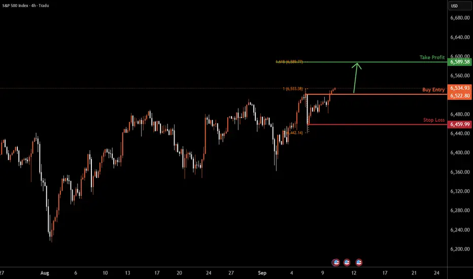 Take profit is at 6,589.58, which lines up with the 161.8% Fibonacci extension.