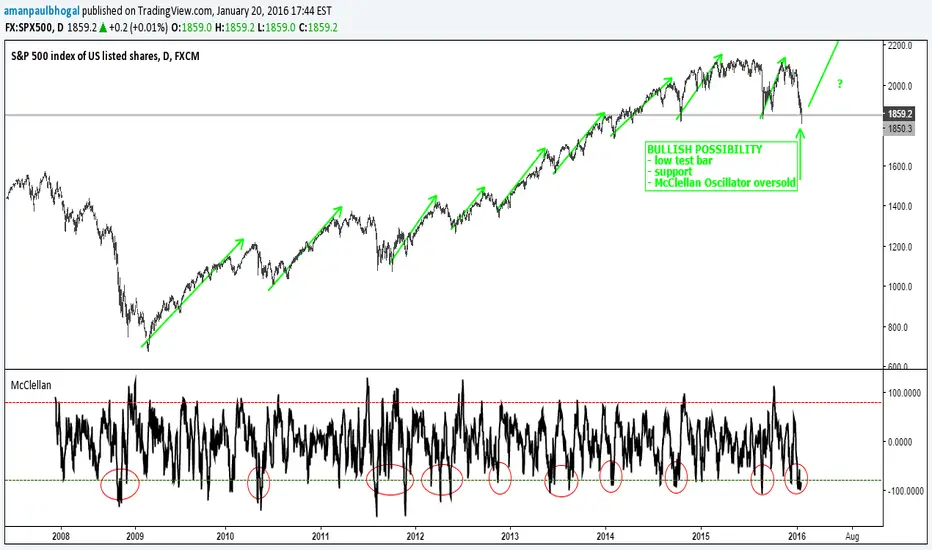 Although I have a bearish view on the major global stock market indices from a longer term cyclical perspective (see older post) and growing bearish momentum in the beginning of 2016 may well be a starting point, the McClellan oscillator, historically during a deeper market correct when oversold (below -80) has price resume an upward rally. Seeing this in the American markets may be a sign of some possibly temporary buying relief. Nonetheless price cyclicity will lead the way in informing a more pronounced down trend/bear market as some other major indices.