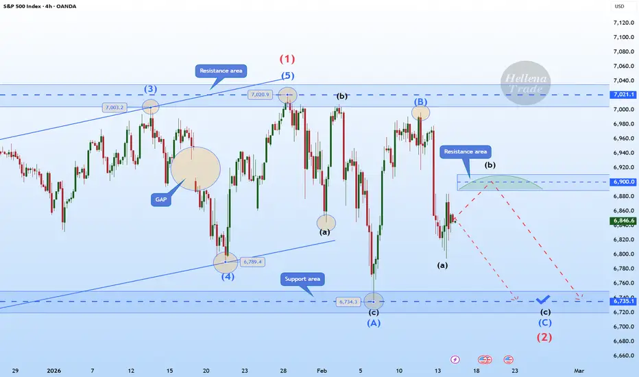 Colleagues, it seems that we are facing a combined correction, which means that wave “2” is not yet complete and we should expect a price decline to the support area of 6735, where I think we should take profits.