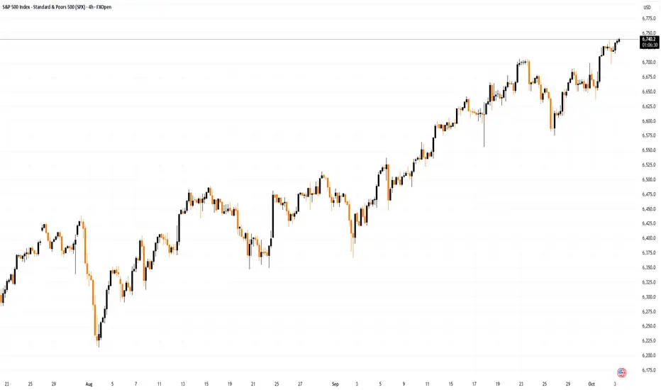 Today, the S&P 500 index reached a fresh all‑time high: on Friday morning the price rose above 6 740 points. This confirms the continued optimism among market participants. Today this is supported by news related to the creators of ChatGPT.