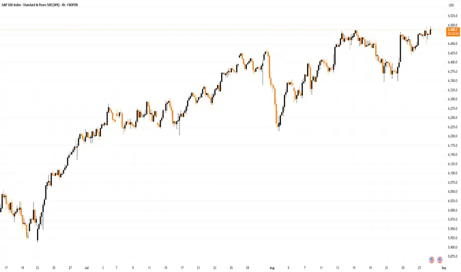 On 13 August, we wrote about the S&P 500 reaching an all-time high following the release of the CPI report. At that time, we suggested that the price might move towards the upper boundary of the ascending channel (highlighted in blue on the chart).