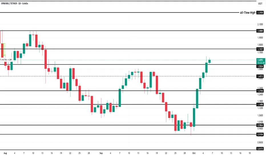 SPX is trading at $1.62, maintaining its position above the crucial $1.58 support level. The altcoin has surged nearly 62% over the past week, hitting a two-month high. This sharp rally reflects renewed investor interest.