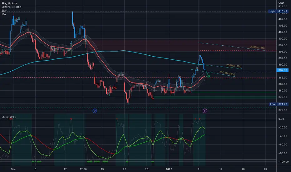 There were two gaps -a bear gap opened Dec. 16th, and a bull gap opened up this morning - and both of those filled and we closed below them, which makes me believe that the 389-90 level will be resistance… unless we get some really great news from JPow tomorrow morning at 9am…. Usually he speaks around 2ish, but tomorrow he’s speaking from Sweden so it’s pre-market….