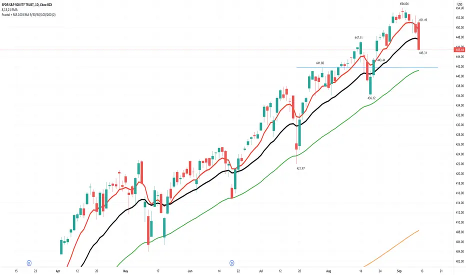 The overall market has turned lower on Friday afternoon as investors booked summer profits. We are currently below the momentum moving averages and the next big support area is the 50EMA. See how the CPI and Retail sales numbers this week influence the complexion of the tape.