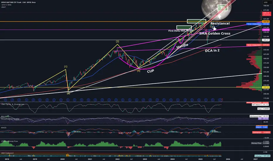 Trump is at war with the Fed. The battle will continue. This is what many other "expert" traders are not seeing. He's doing his darnedest rn to manipulate the market down while the gov't is also shutdown and on its knees. The goal is to get JPOW to cave. IYKYK. If we get to 600 and there are still no signs the FED will reduce rates further than currently expected, then you should count on more shenanigans as he will probably attempt to drop it down to 563-570 with some more shocking tariff headlines. As already mentioned, if the SPY dropped all the way down to 300, we'd still technically remain in a secular bull market since 2009. Be prepared. Since Trump has no power or authority over the Fed, he will use other means of persuasion at his disposal. This you all should see clearly now. It is a story most other traders are seeming to miss for reasons unknown. It all seems fairly apparent to me and is why I am able to call the market so accurately.Stewdamus Trades -