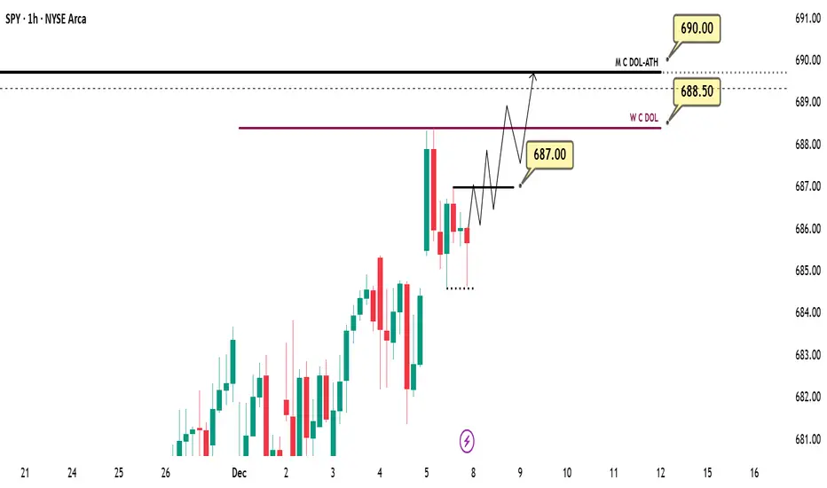 If I see a strong daily close above 687, I plan to buy the retracement into 685, targeting: